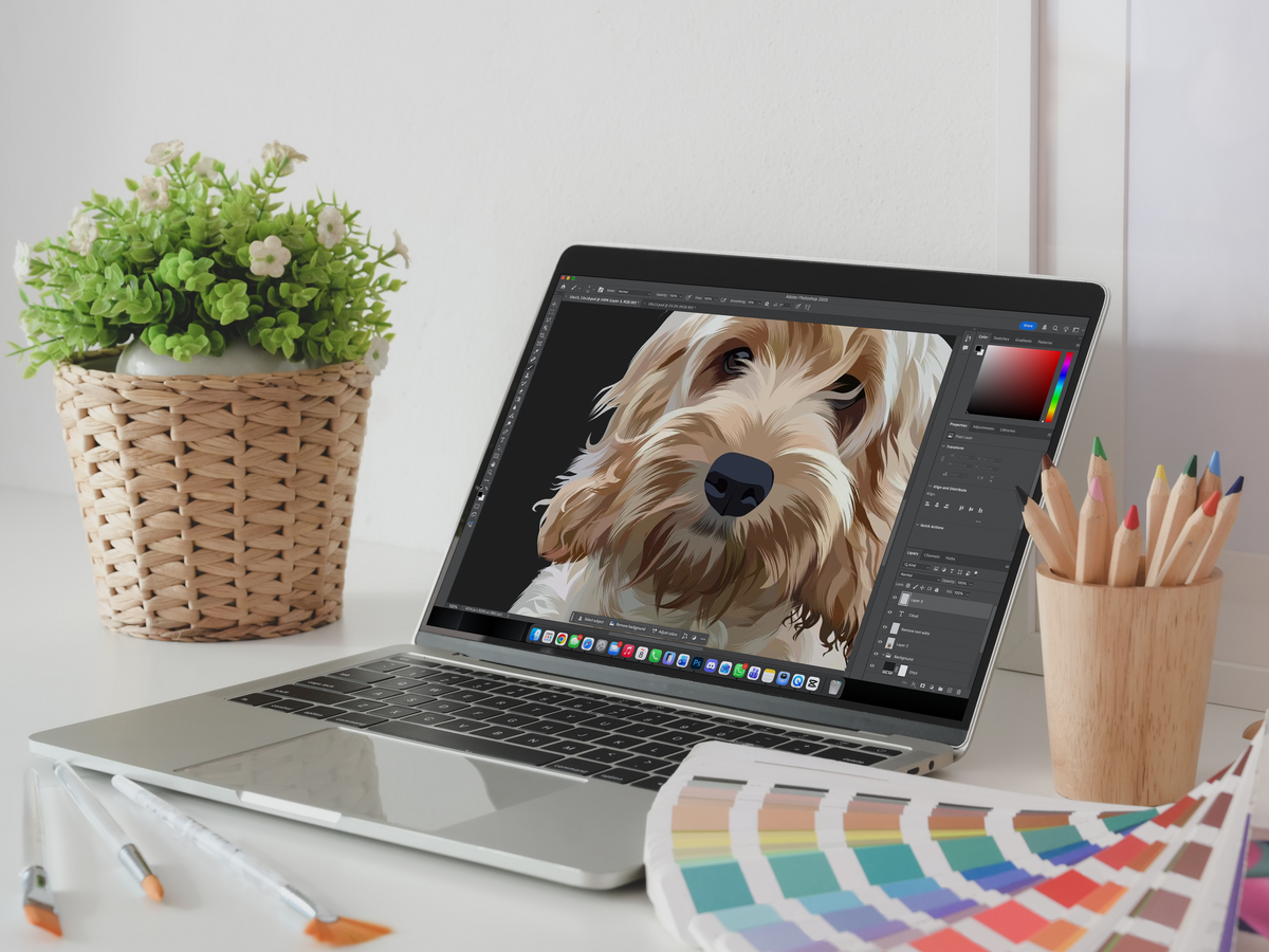 Our portraits are individually illustrated by skilled digital artists. Each detail is refined by hand to capture your pet’s unique personality.