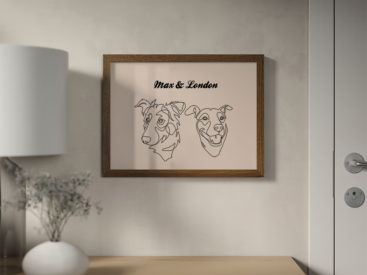 Our custom pet portraits are designed to blend effortlessly into modern homes. Each piece is illustrated with care, creating timeless artwork that elevates your space and celebrates the bond you share with your pet. Perfect for gallery walls, cozy corners, or meaningful gifts.